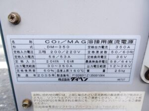 | 品目 | DAIHEN/ダイヘン CO2/MAG溶接用直流電源 DM-350 半自動溶接機 ワイヤ供給装置 三相・200V |