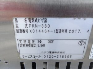 | 品目 | ニチワ電機 電気式ピザ窯 PKN-380 ピザオーブン 三相・200V 2017年製 |
