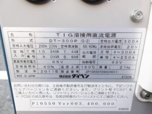 | 品目 | DAIHEN ダイヘン TIG溶接用直流電源 DT-300PⅡ/DIGITAL ARGO 三相・200V 2011年製 |